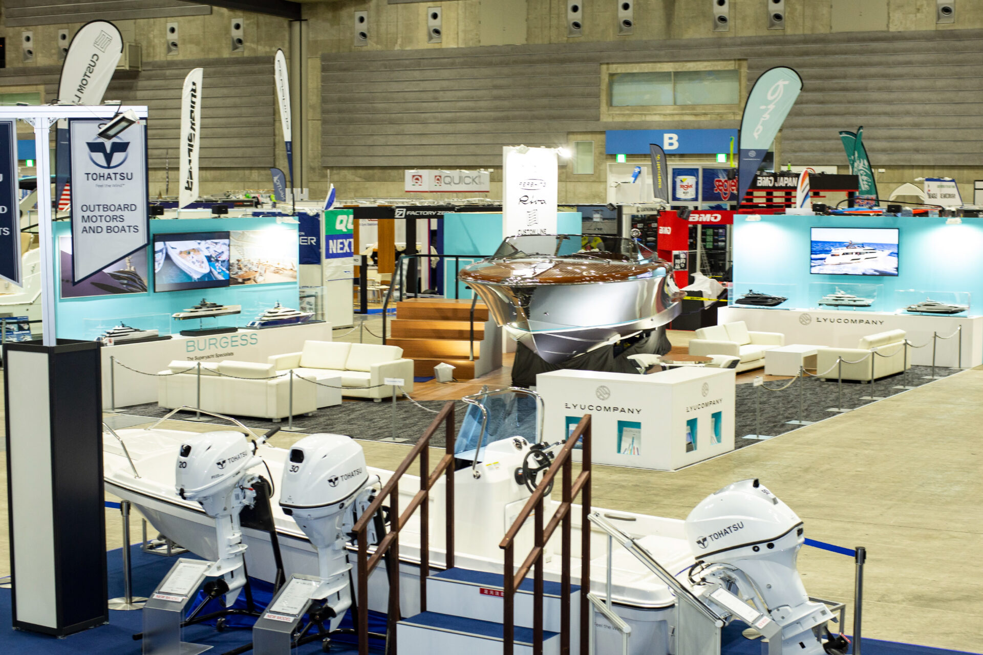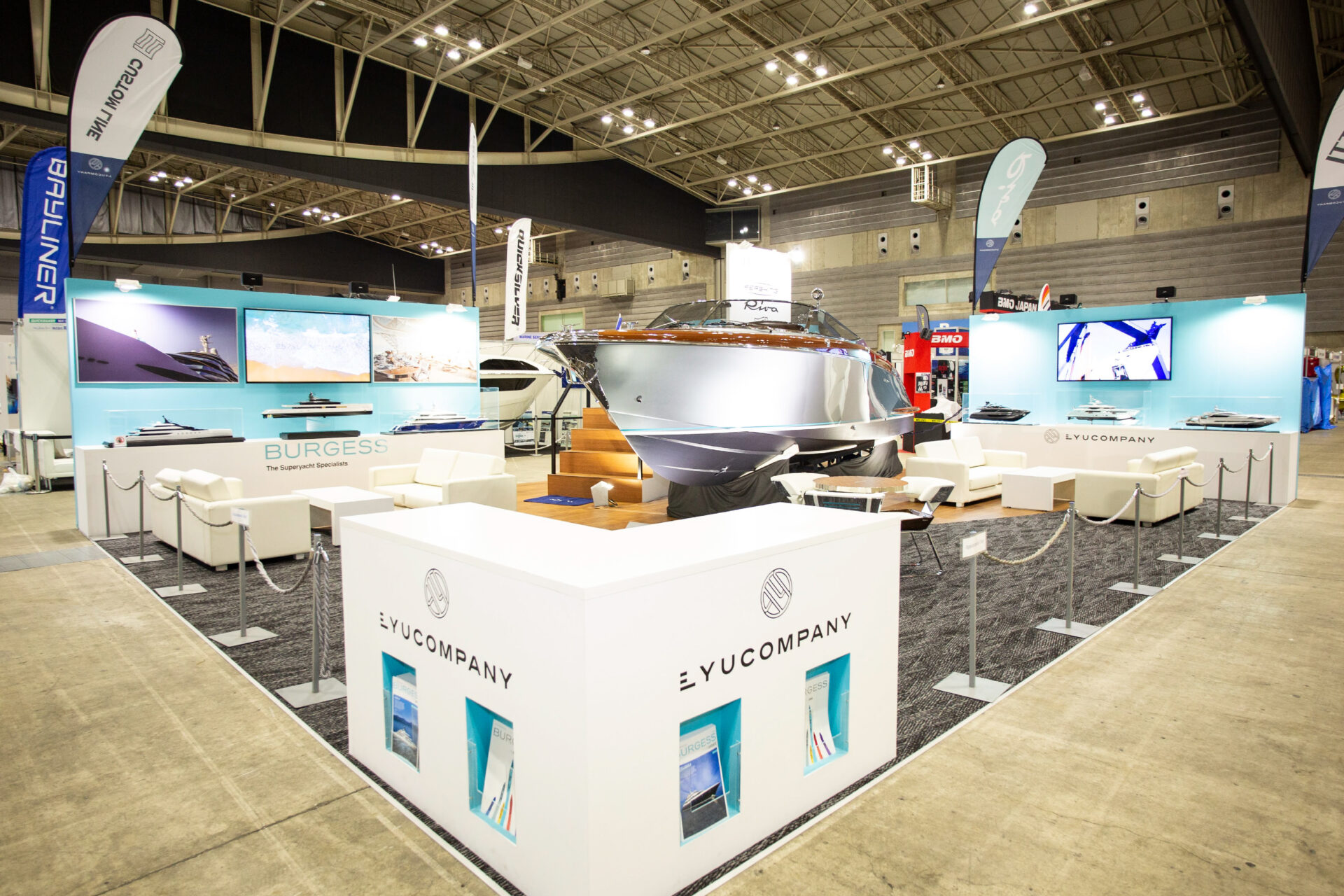 ジャパンインターナショナルボートショー2019にて、リュウカンパニーの展示会をプロデュース。背景には、高級ヨットの販売にふさわしいラグジュアリーな体験を、展示ブース全体で表現する必要性があった。解決策として、ヨット関連商材の展示を上質に魅せる演出を導入。限られた予算を考慮しつつも素材選定や導線を工夫し、2会場を連動させた一体感ある演出を構築。結果、来場者の購買意欲を高める空間を実現した。