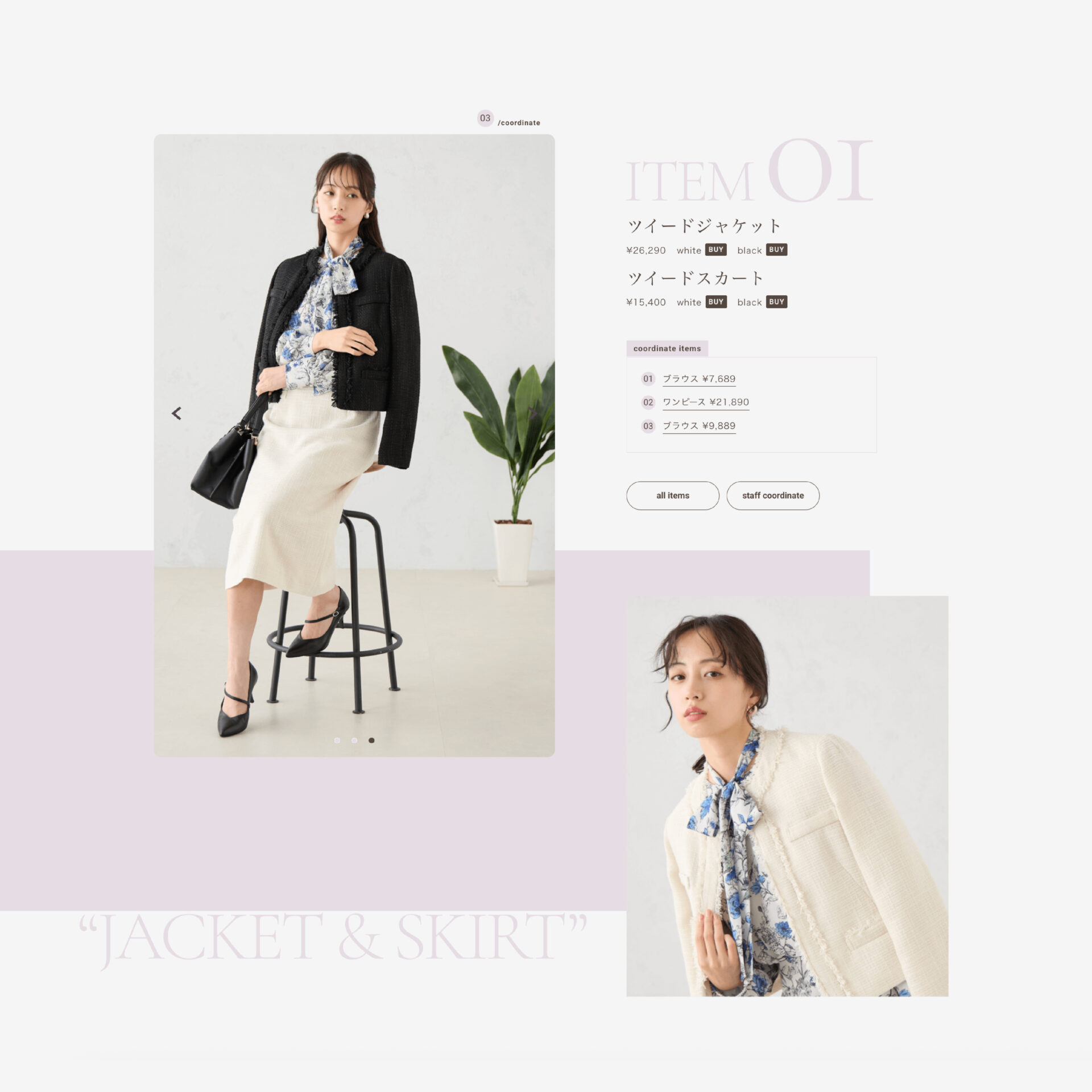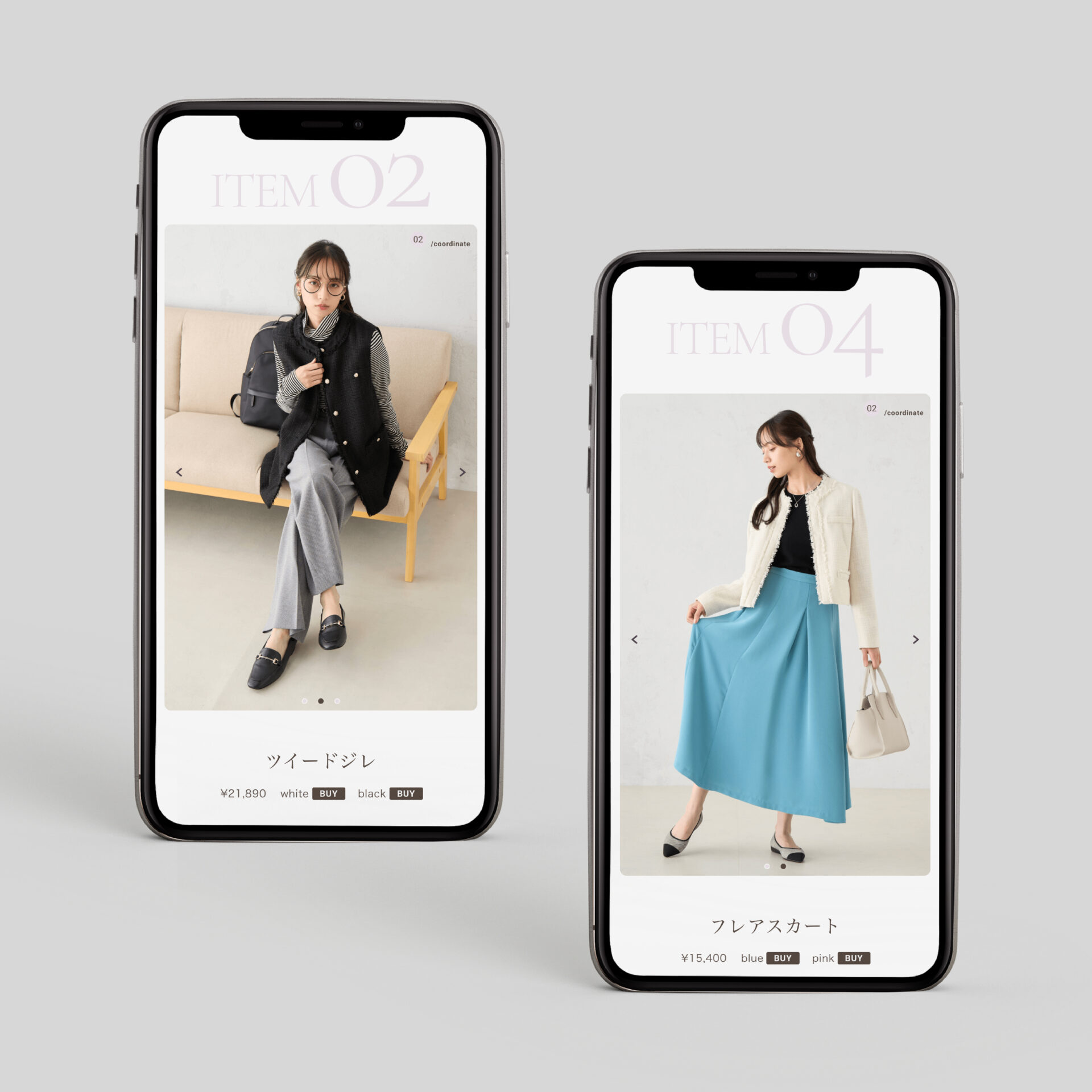 AOKIオンライン限定ライン「LIMITED COLLECTION」を訴求する特設ランディングページ制作。女性モデルを中心に構成し、軽やかな色調や柔らかなデザインでフェミニンな世界観を表現。オフィスから休日まで活躍するコーディネート提案を盛り込み、限定感と実用性を両立を意識。シンプルなレイアウトにさりげないモーションを加え、上質さを損なうことなく購買を後押しするオンライン体験を実現しました。