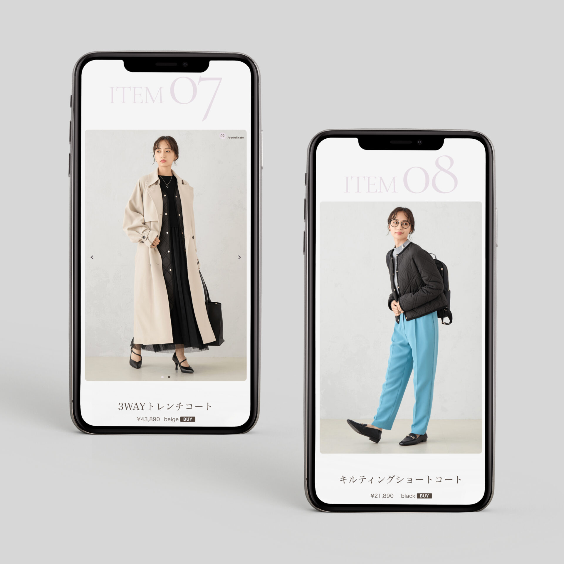 AOKIオンライン限定ライン「LIMITED COLLECTION」を訴求する特設ランディングページ制作。女性モデルを中心に構成し、軽やかな色調や柔らかなデザインでフェミニンな世界観を表現。オフィスから休日まで活躍するコーディネート提案を盛り込み、限定感と実用性を両立を意識。シンプルなレイアウトにさりげないモーションを加え、上質さを損なうことなく購買を後押しするオンライン体験を実現しました。