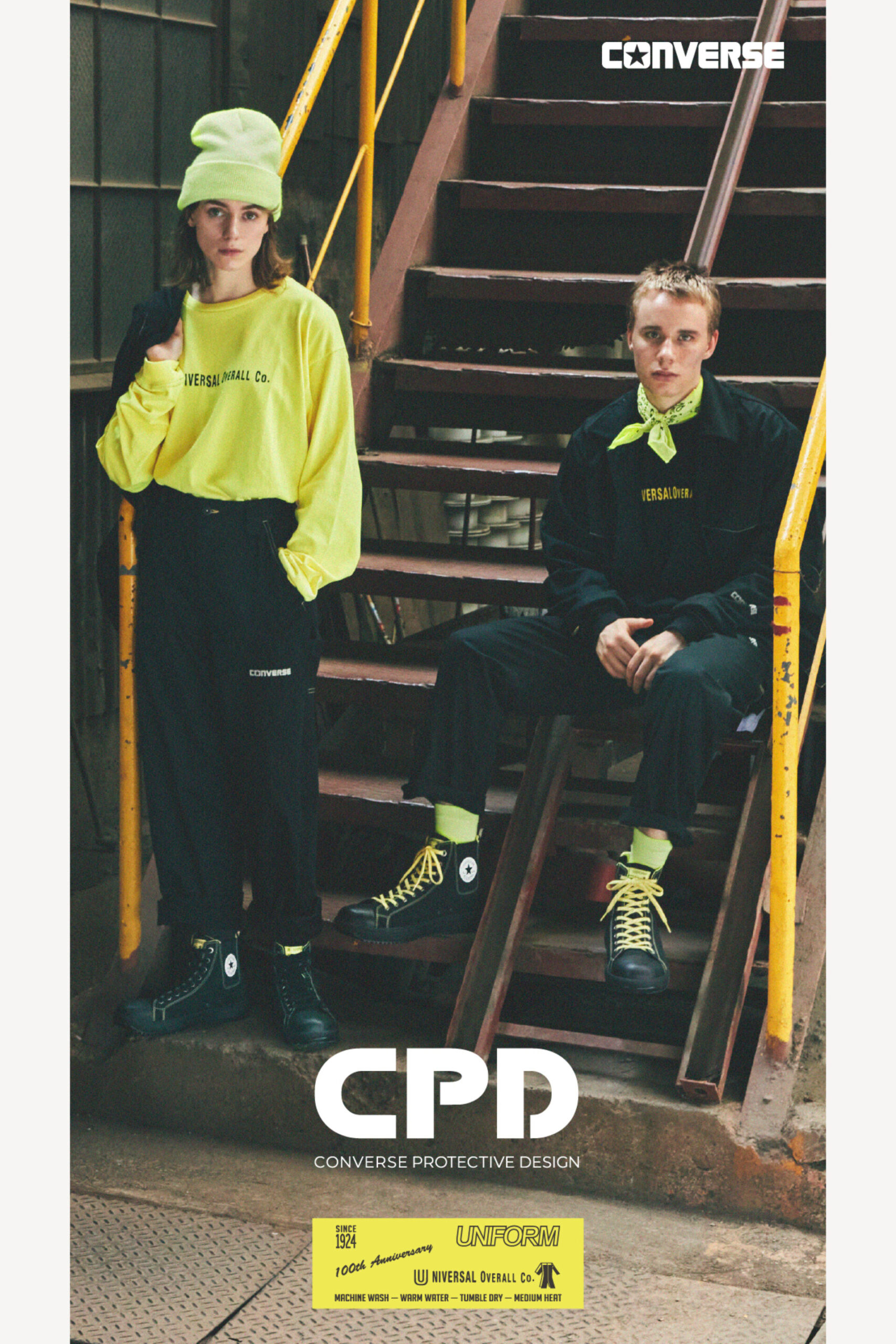 コンバースのプロテクティブライン「CPD」2024年秋冬シーズンにおいて、メインビジュアルと動画を制作。タフな機能性とファッション性を両立するブランドの魅力を際立たせました。加えて、UNIVERSAL OVERALLとの限定モデルのビジュアル&ムービーも展開し、シーズンの話題性を創出。完成したクリエイティブは公式WEB、SNS、店頭、広告を通じて幅広く発信されています。