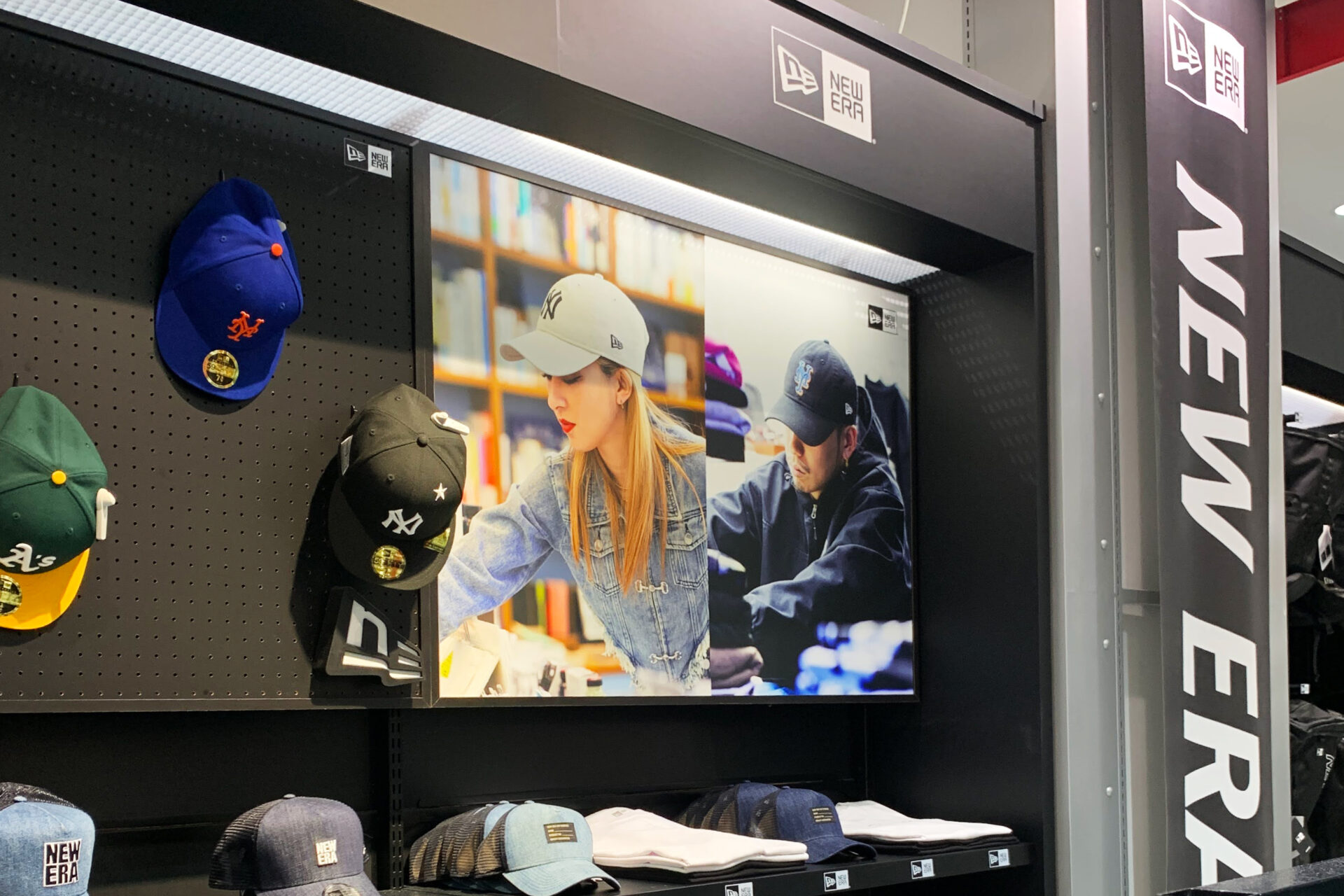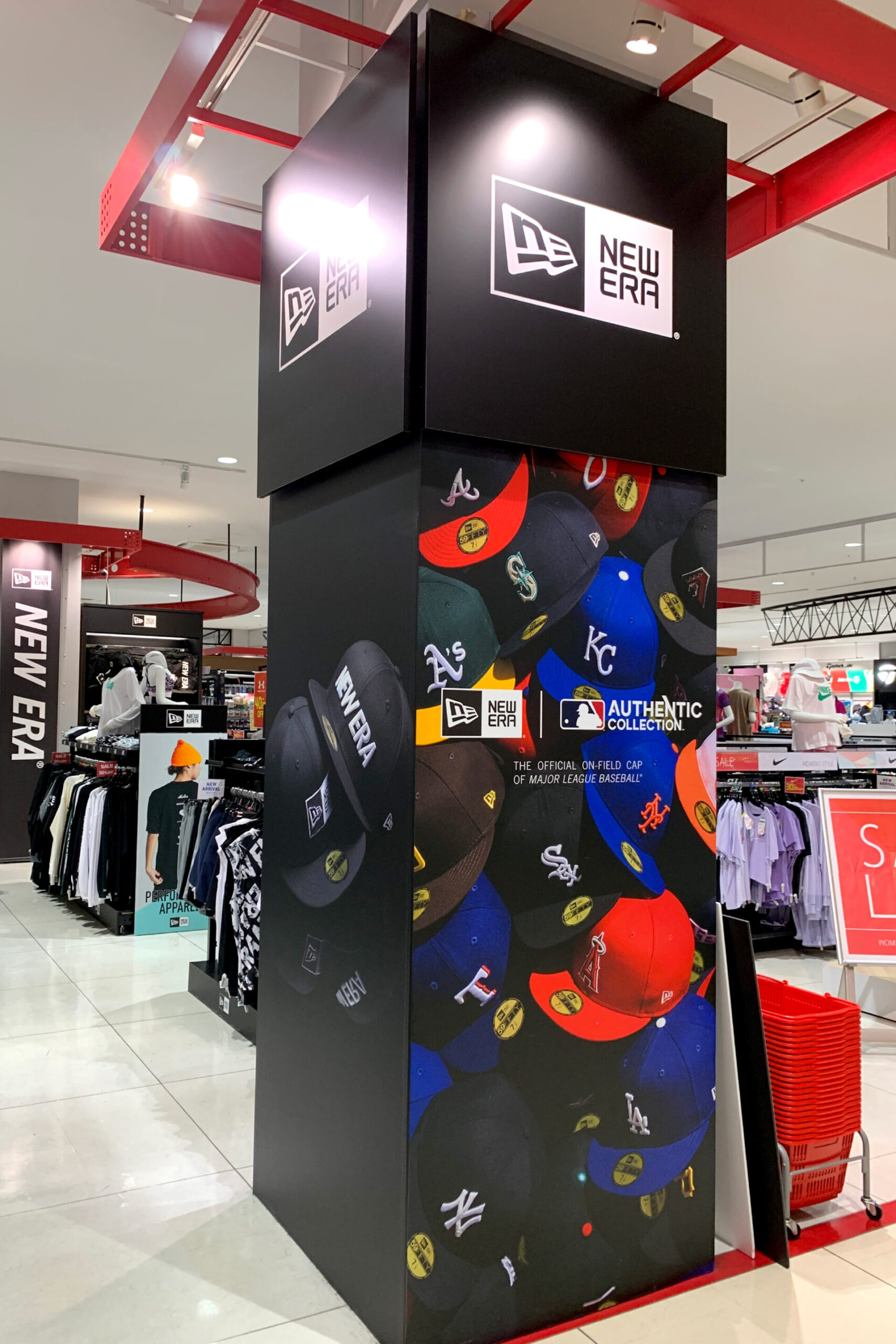 Victoria Sports越谷レイクタウン店のNEW ERAコーナー装飾を担当。広大な売場でブランドが埋もれる課題に対し、高さを活かしたグラフィックを配置し、遠方からの視認性を確保。さらに小物演出を取り入れることで細部まで世界観を反映。結果、他ブランドとの差別化を図り、立ち寄りたくなる売場を実現しました。